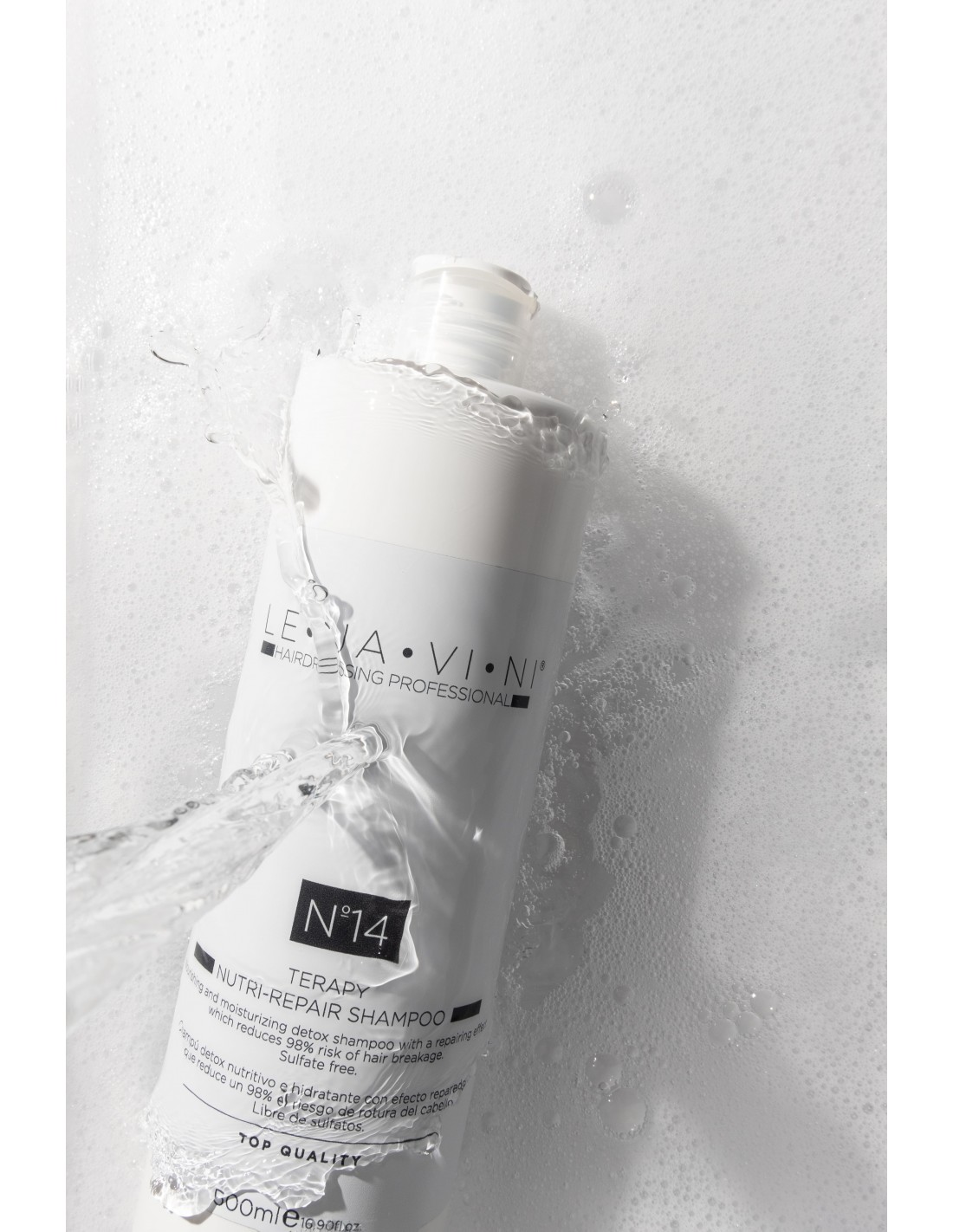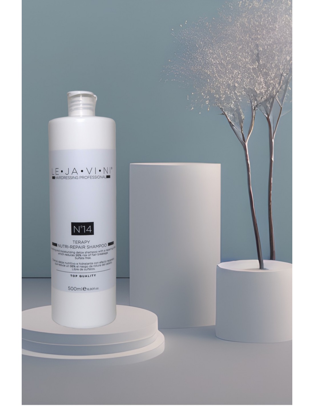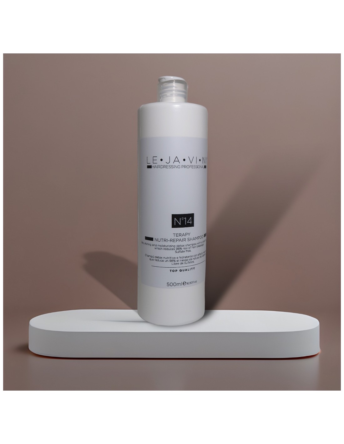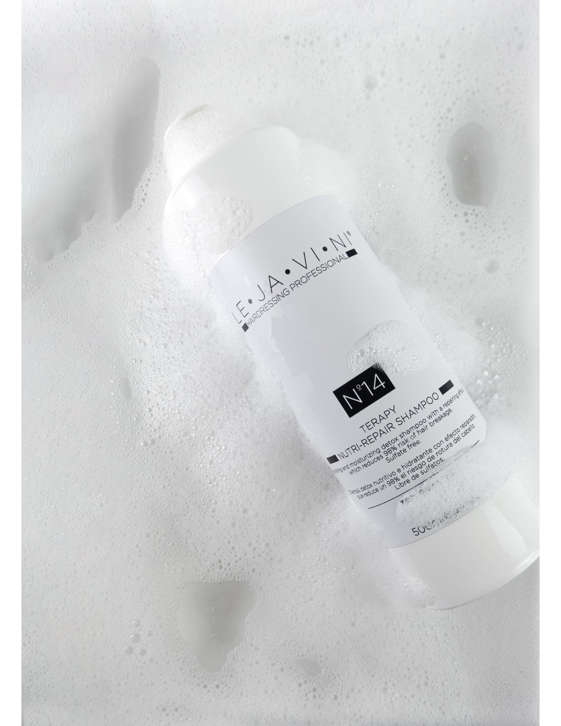 El Nº14 THERAPY NUTRI-REPAIR SHAMPOO 500ml de LE·JA·VI·NI es un champú nutritivo reparador diseñado para cabellos tratados químicamente y decolorados. Su fórmula avanzada proporciona una limpieza profunda mientras hidrata y nutre la fibra capilar, reduciendo el riesgo de rotura hasta en un 98% cuando se combina con la mascarilla Nº15.
