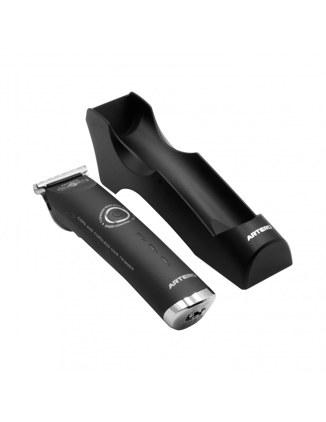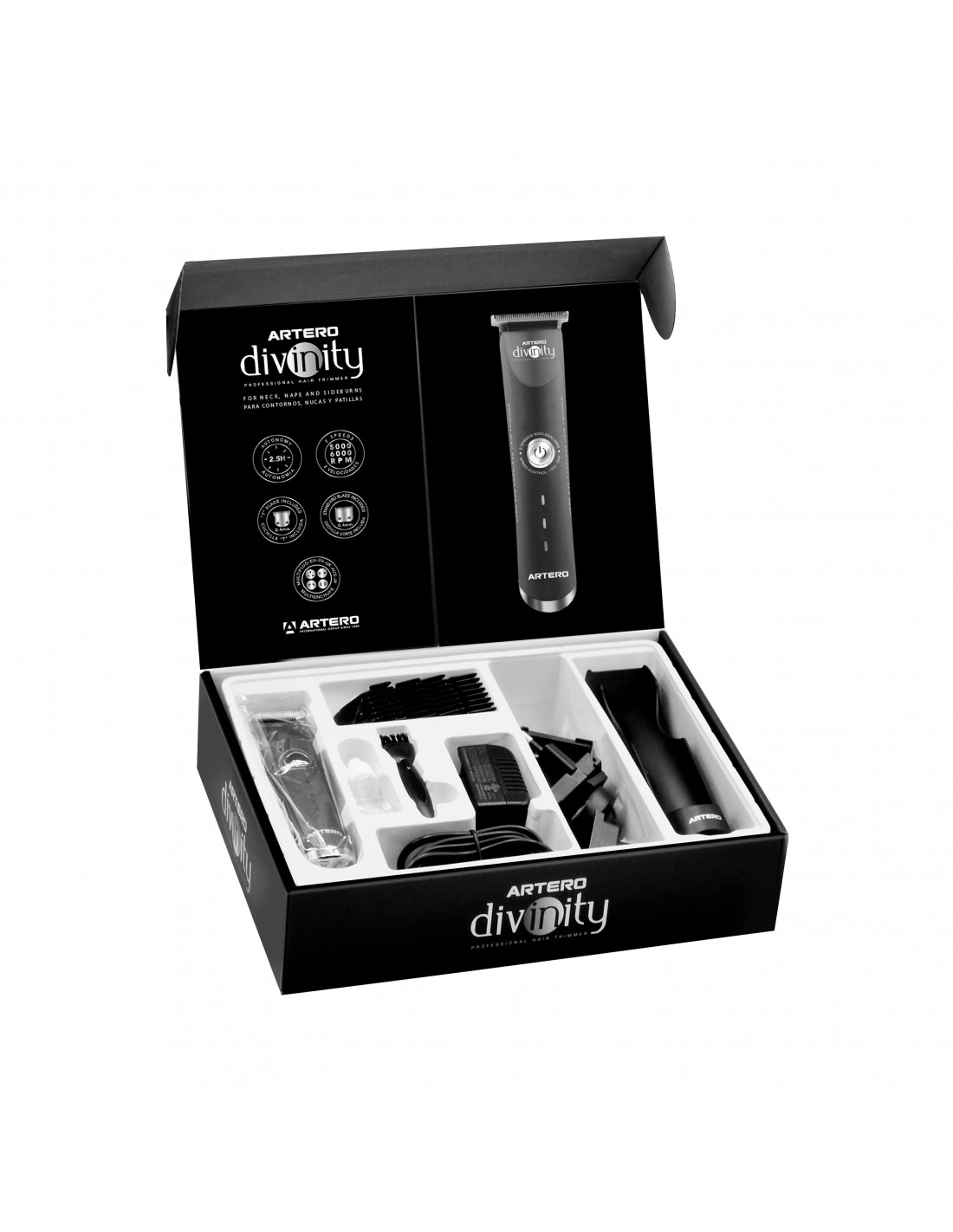 Máquina profesional de fucnionamiento con y sin cable. Dos cuchillas intercambiables. De peso ligero y con recalces en una patillera multifunción y muy versátil. Rasura, traza contornos y corta en pequeñas secciones.