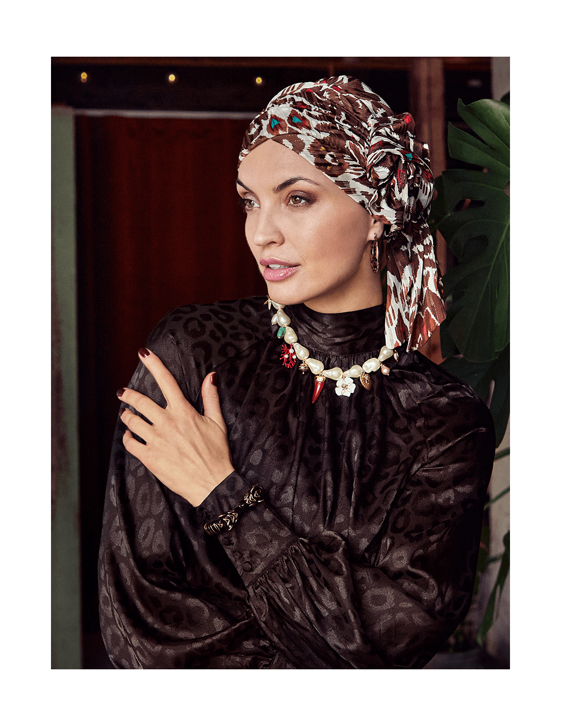 Turbante 2 en 1 ( turbante + diadema ) Poliéster con forro de algodón-viscosa
