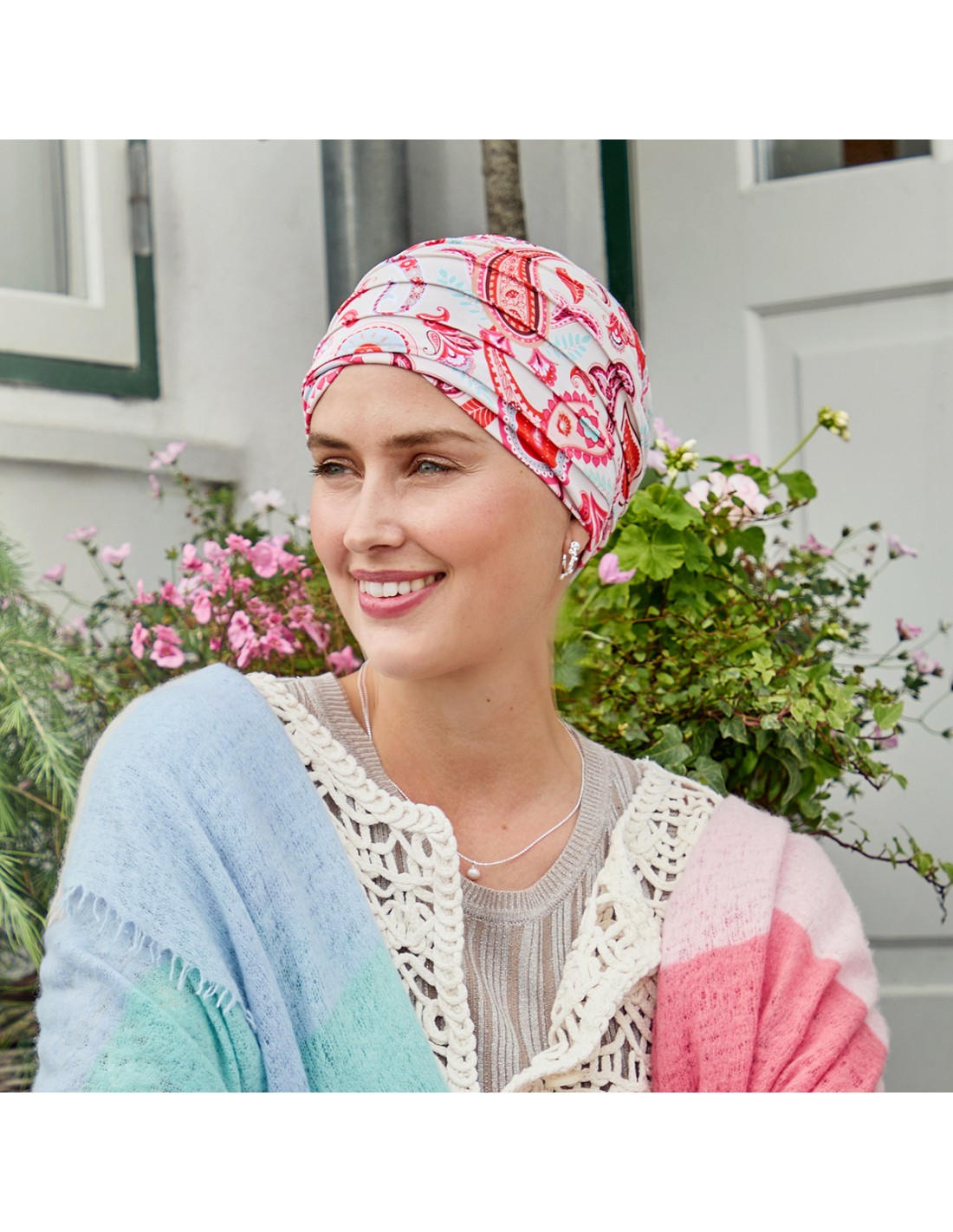 Disponible en distintos estampados, te permite cambiar de look según tu estado de ánimo o la ocasión, manteniendo siempre una estética elegante y natural. Una opción práctica y bonita para acompañarte durante procesos de caída del cabello por quimioterapia o alopecia, aportando seguridad, bienestar y confianza.