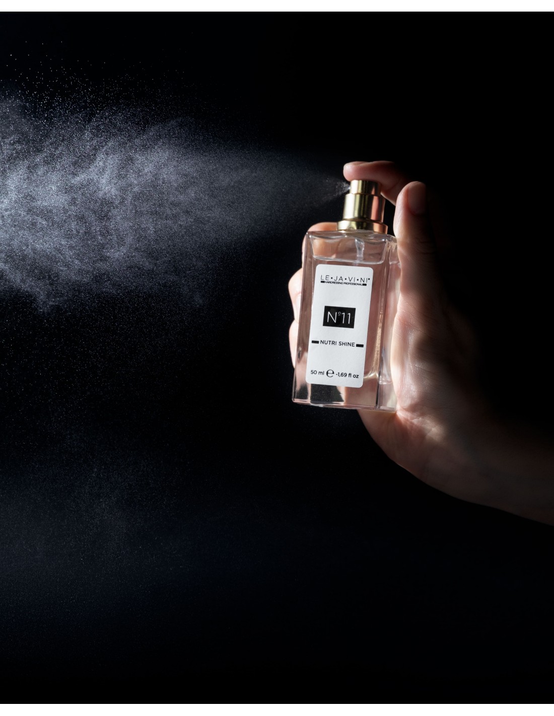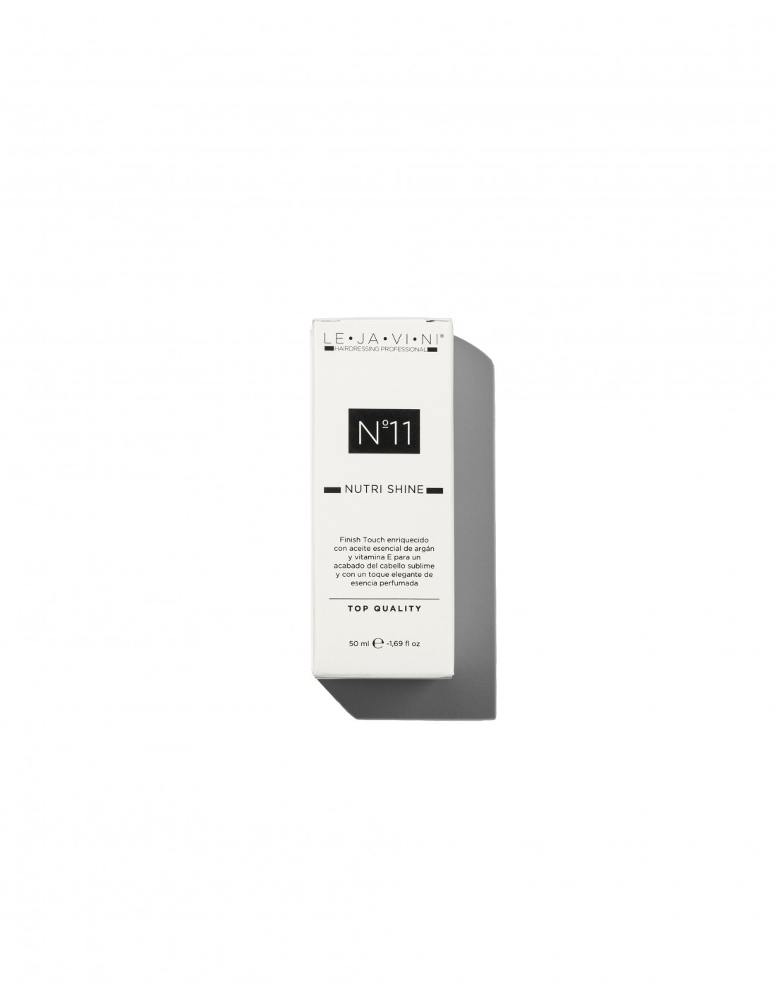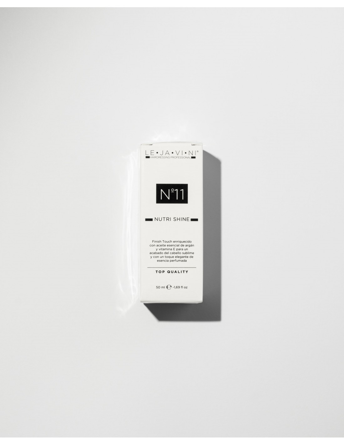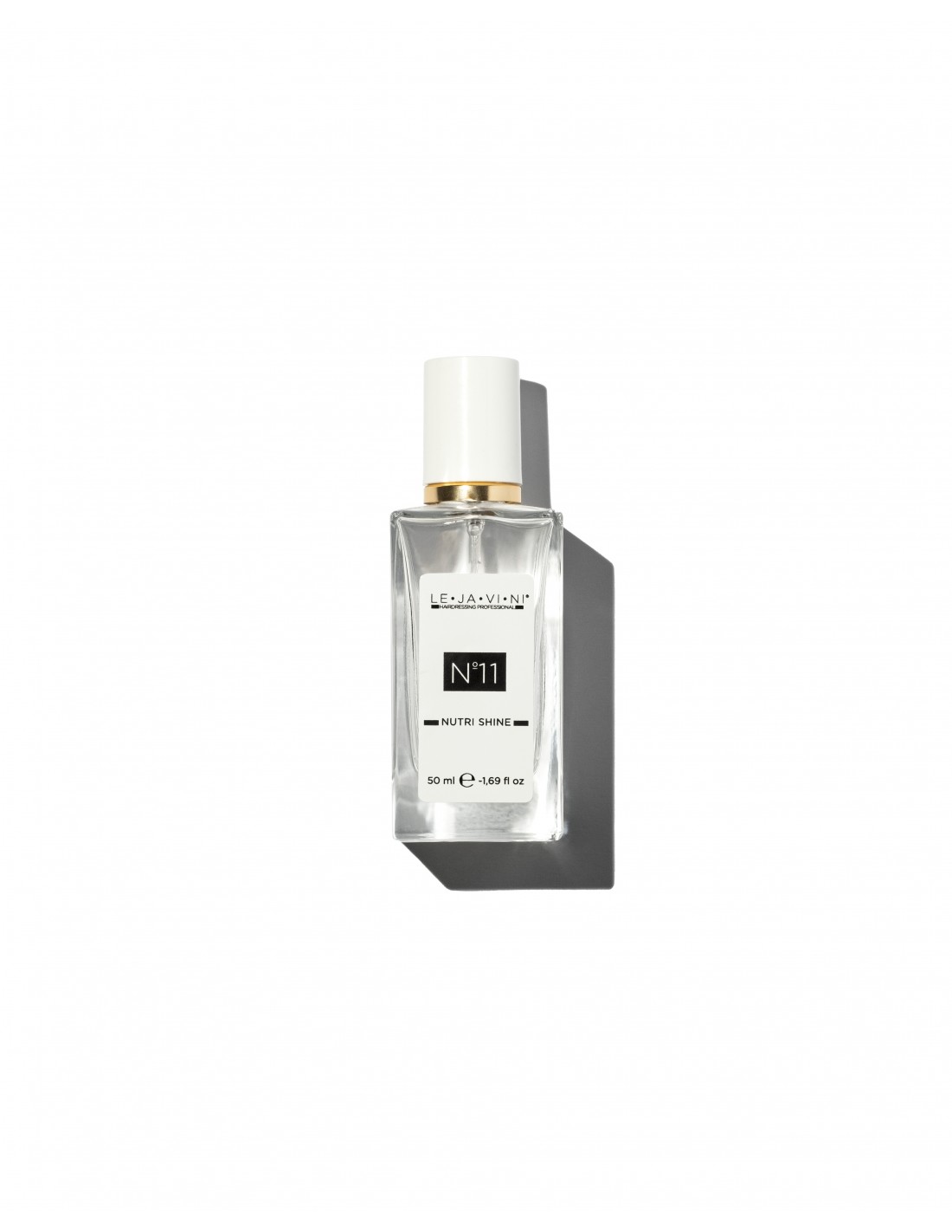 La bruma capilar con argán Nº11 NUTRI SHINE 50ml Cabello Sublime LE·JA·VI·NI es un tratamiento ligero y multifuncional diseñado para revitalizar y embellecer el cabello en cada aplicación. Su fórmula combina aceite esencial de argán biodegradable y vitamina E, creando una sinergia perfecta que transforma el cabello, aportando un brillo natural y un tacto sedoso.